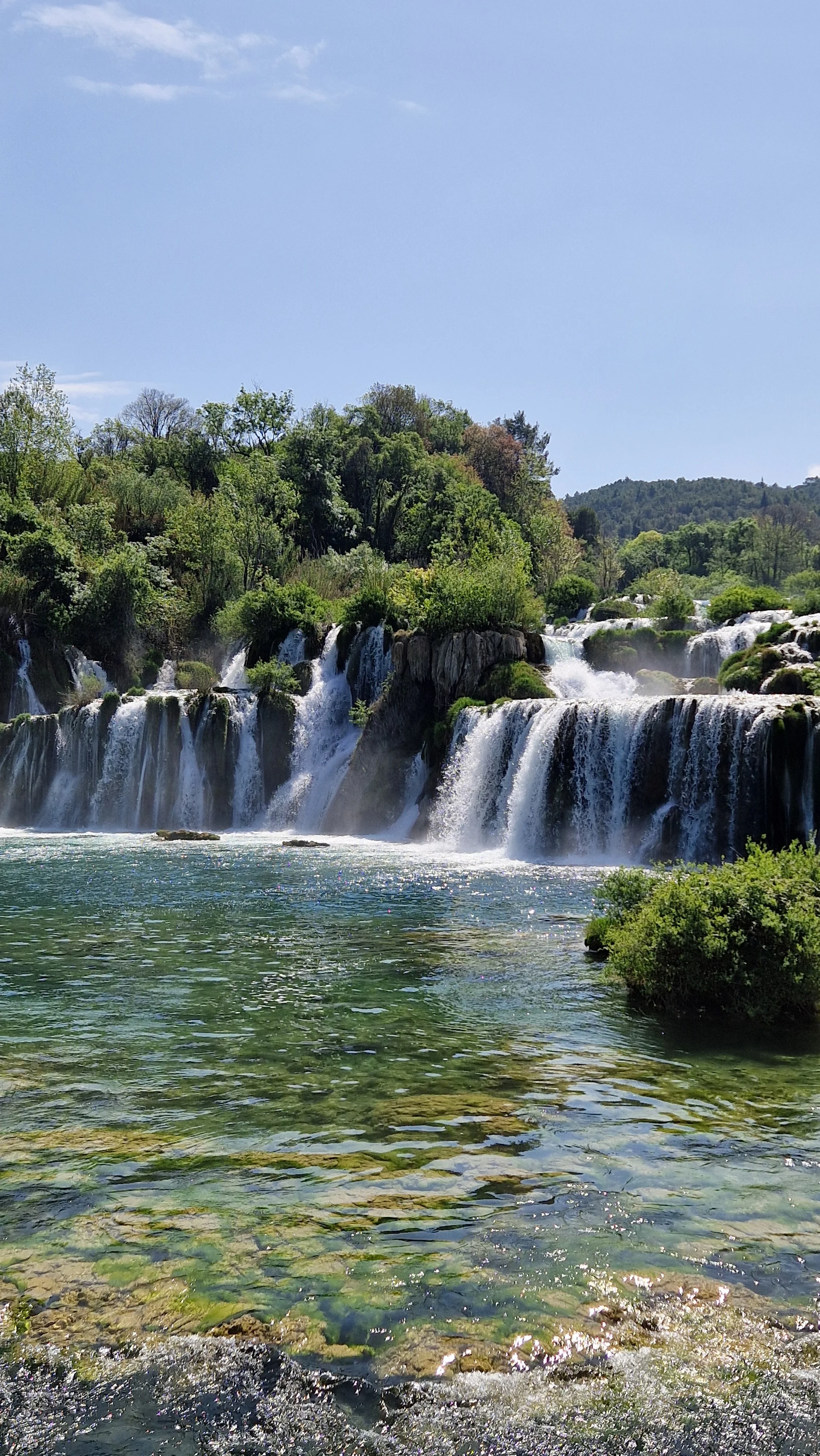 Seuraavana lomapäivänä halusin nähdä Kroatian kauneinta luontoa, joten oli aika suunnata Krkan kansallispuistoon ja vesiputouksille. Halusin helpon matkan joten päädyin buukkaamaan valmisretken, joka oli todella hyvä valinta! Retki alkoi aamulla, jolloin suuntasimme oppaan kanssa kohti Krkan putouksia. En ollut etukäteen tajunnut, miten upeasta paikasta on kyse. Jo itse matka paikan päälle oli ihana vuoristomaisemineen. Saimme myös kuulla Splitin ja Kroatian historiasta. Opas osti puolestamme liput, jotka olivat edullisemmat kuin sesonkiaikaan. Nyt huhtikuussa vain 16€, kun taas sesonkina sisäänpääsy maksaa 30€. Puistossa mahtui myös liikkumaan todella hyvin ja putouskierros oli alle 3km. Kävelimme kauniita pitkospuita ja siltoja pitkin sekä näimme useita kauniita näköalapaikkoja. Päätepysäkkimme oli pienen rannan tuntumassa, josta lähti 30minuutin mittainen laivamatka Skradin nimiseen kylään.
